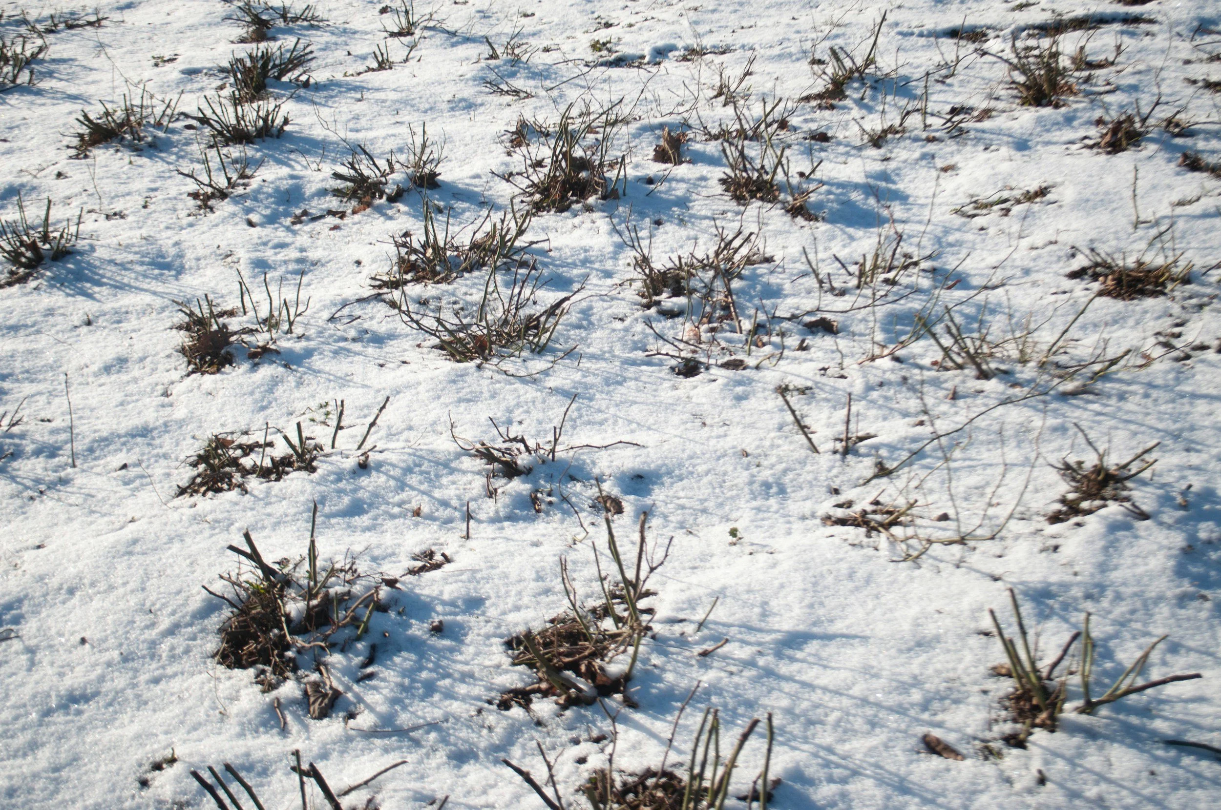 Here in early spring, the hope of anything green is hidden.